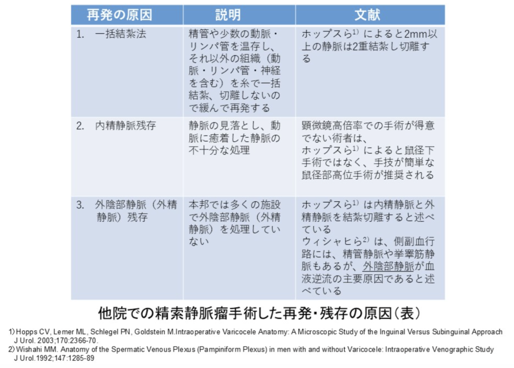 他院で再発した精索静脈瘤手術は、多くの医師がナガオメソッドを推奨しています。再発予防にもナガオメソッドをおすすめいたします。