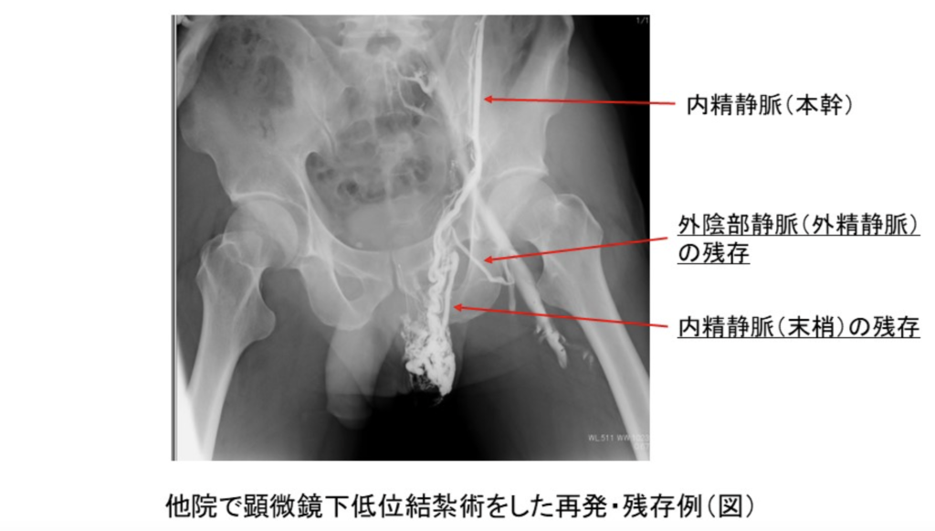 内精逆流静脈だけを動脈やリンパ管などとまとめて結紮する一般的な方法と異なり、通常は対処が難しい外陰部逆流静脈(外精逆流静脈)まで処置できます。
