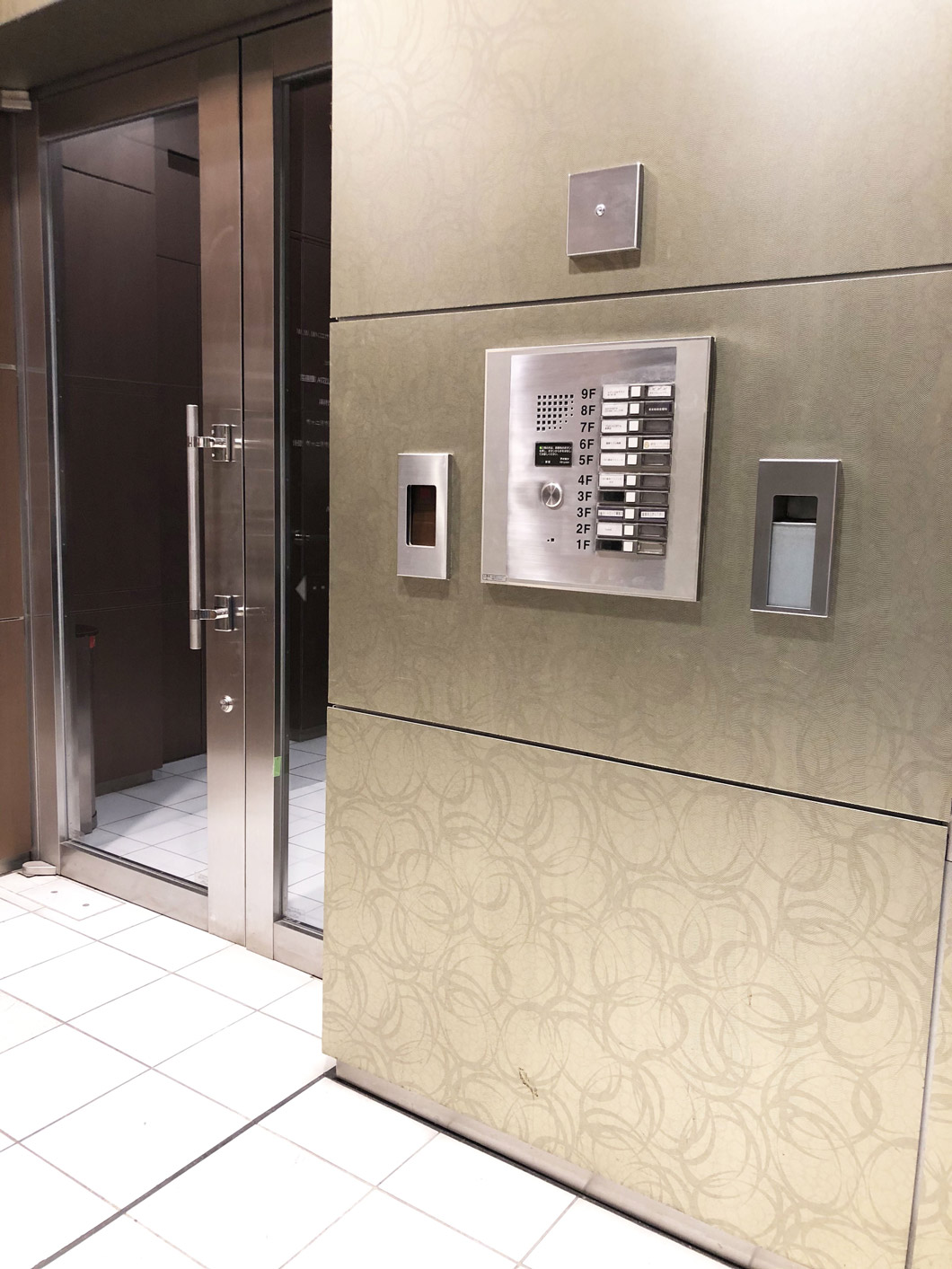 診療中はエレベーターが動いていますが、作動していない場合は、ビル1階にあるインターフォンで呼び出してください。
